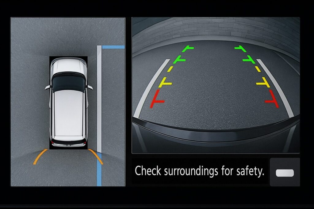 真上から見下ろしたような映像で、車庫入れが“感覚頼み”じゃなくなるのが最大の安心