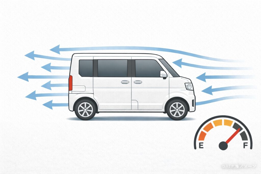 - 箱型で背が高い → 空気抵抗が出やすい