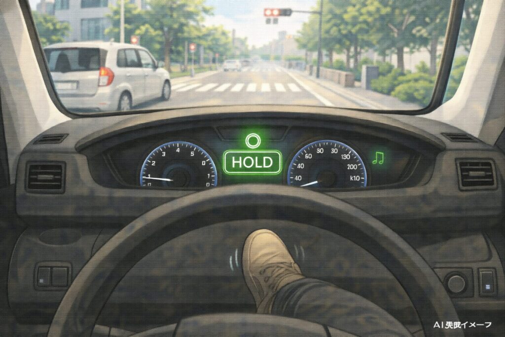 ブレーキホールドがONだと、停止中に“クリープ(ブレーキを離すとゆっくり進む動き)”が出にくく感じることがあります