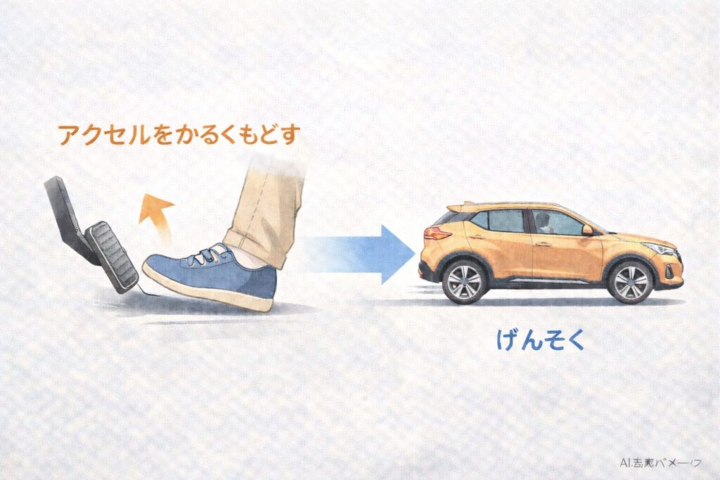「とりあえずアクセルをゆるめれば、まず速度が落ちる」