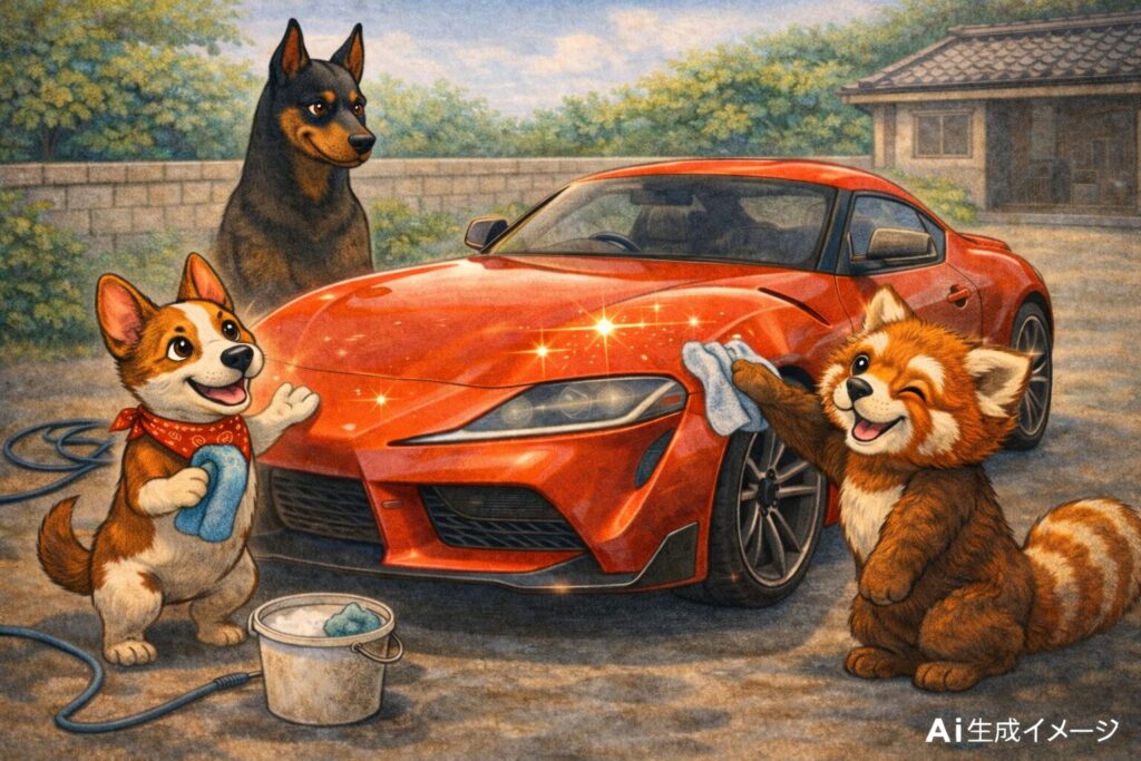 自分で簡単に施工できるコーティング剤を一本持っておけば、洗車のたびに惚れ直しやすくなります。 👉 スープラの艶を守るコーティングを見る